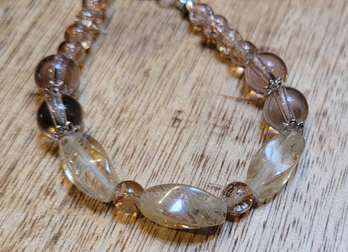 Deze prachtige armband van citrine natuursteen kralen, roze kralen en crackle roze kralen is een echte eyecatcher! De armband is voorzien van een zilverkleurige sluiting met verlengketting, waardoor hij geschikt is voor polsmaten van 17cm tot 20cm. De warme kleuren en glinsterende accenten maken deze armband perfect voor elke gelegenheid.