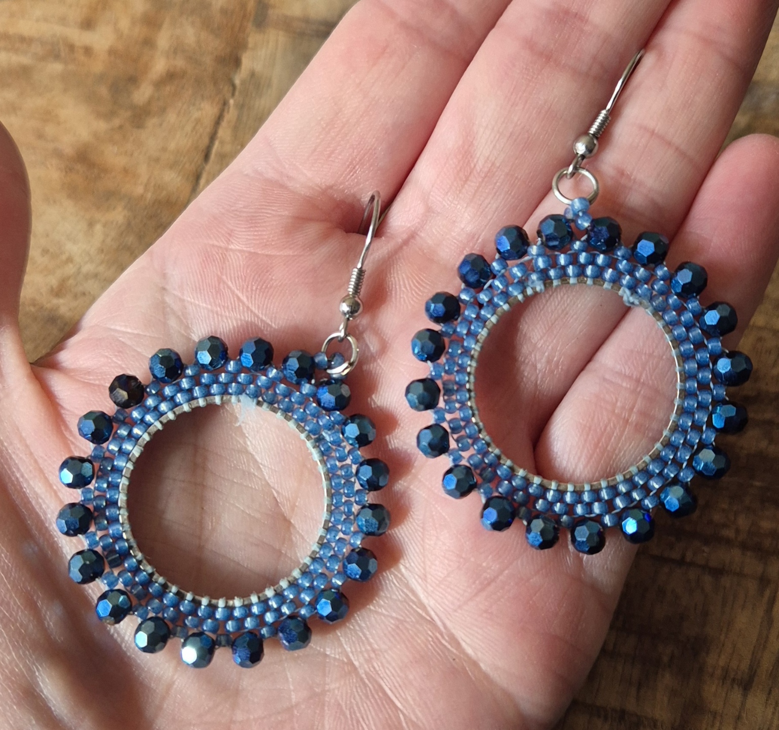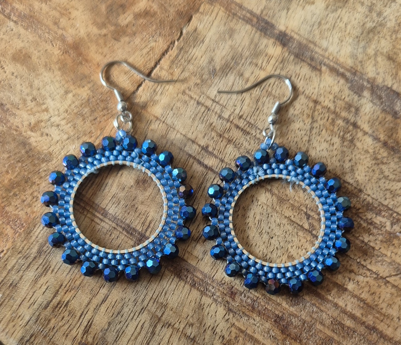 Deze handgemaakte oorbellen zijn een echte eyecatcher dankzij de verfijnde brickstitch techniek, waarbij elke kraal zorgvuldig op zijn plek is geweven voor een strak en symmetrisch ontwerp. De combinatie van 4×3 mm glasrondellen en 11/0 rocailles zorgt voor een schitterend spel van glans en kleur, dat bij elke beweging subtiel licht vangt.