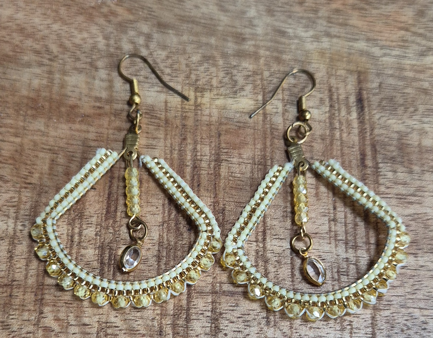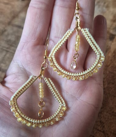 15/0 gele rocailles, 15/0 goudkleurige delica kralen en 2 mm gele zirkonia kralen