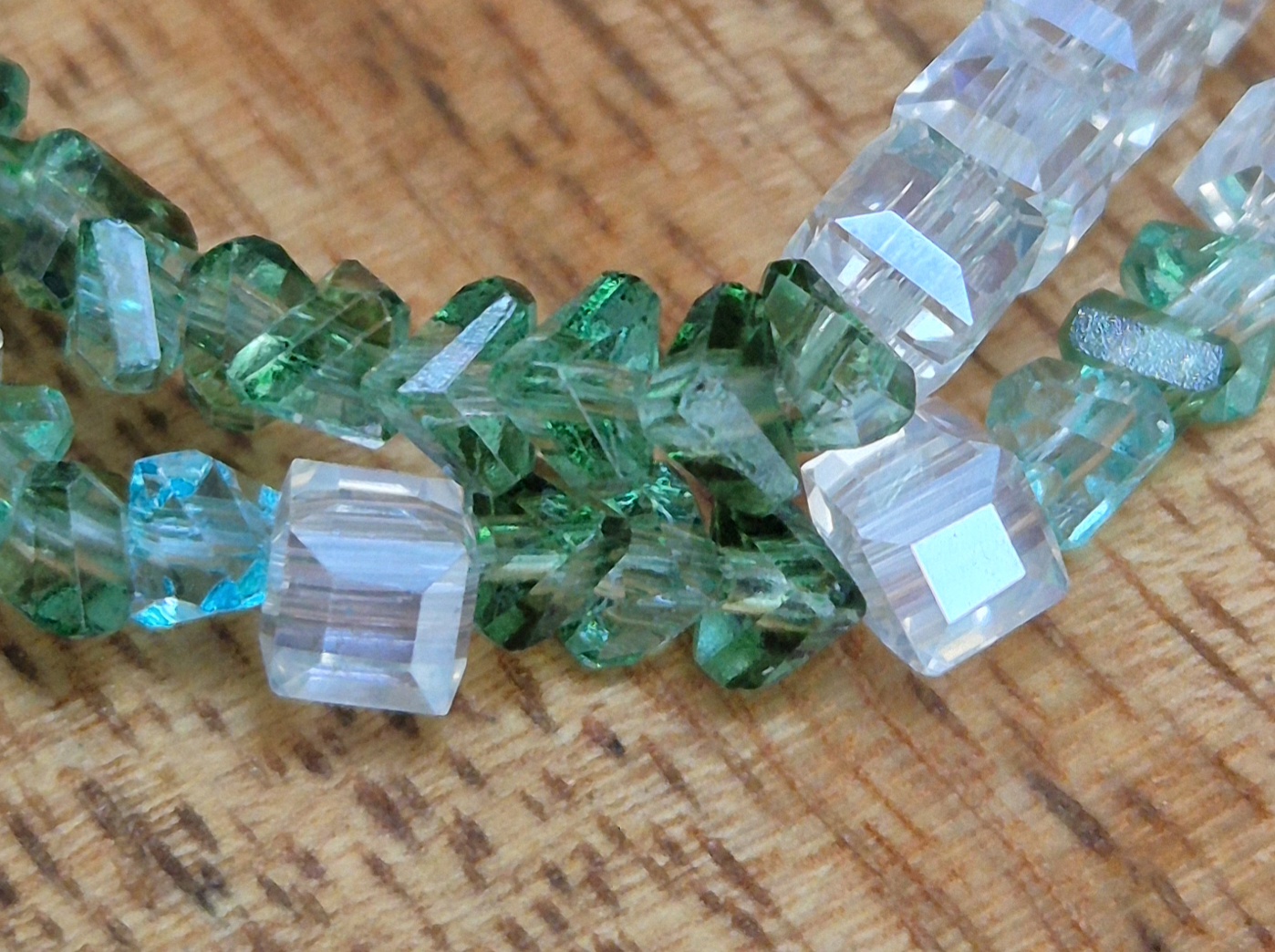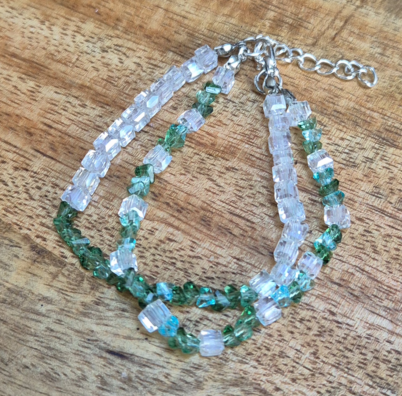 Dit prachtige groen transparante armbandje is gemaakt van transparante vierkante AB glaskralen en groene glas chips kralen. De armband heeft een zilverkleurige sluiting met een verlengketting, waardoor je de armband kunt dragen met een polsmaat van 16cm tot 20cm. Het armbandje voegt een vleugje kleur en elegantie toe aan elke outfit en is perfect voor zowel dagelijks gebruik als speciale gelegenheden. Met zijn unieke ontwerp en hoogwaardige materialen is dit armbandje een absolute must-have voor elke sieradencollectie.