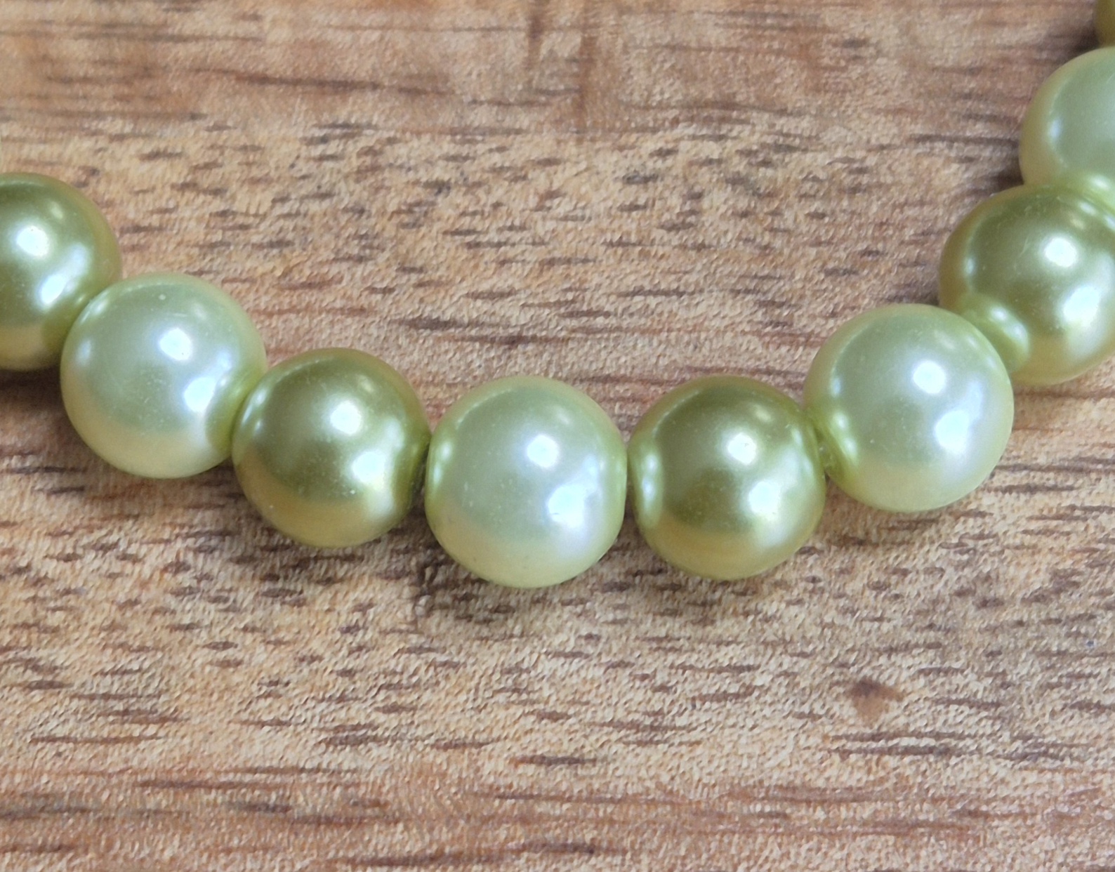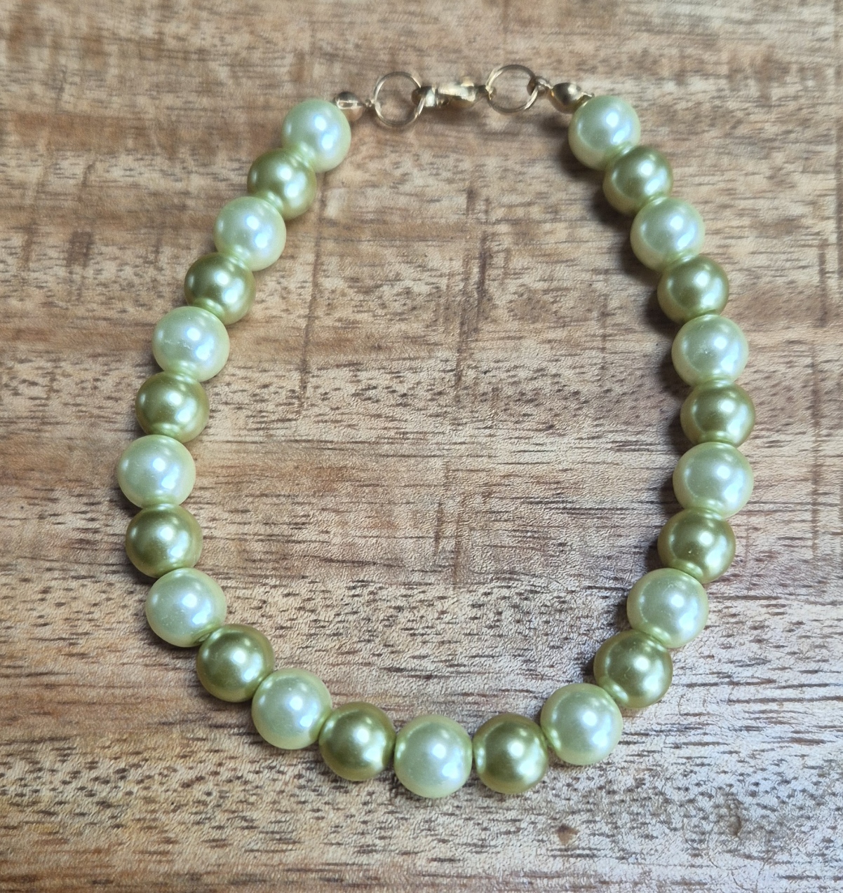 Breng een vleugje natuurlijke elegantie aan je look met deze verfijnde armband van groene glasparels. De glanzende kralen hebben een zachte, frisse tint die doet denken aan lente, licht en rust. De armband heeft een goudkleurige sluiting en is te dragen met een polsmaat van 20,5cm.