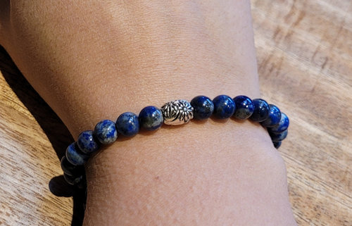 Deze prachtige Lapis Lazuli armband is handgemaakt van 6mm natuurstenen kralen. Het armbandje is geregen op elastiek en voorzien van leuke zilverkleurige metalen kraaltjes. De armband is geschikt voor een polsmaat van 16,5cm/17cm. Lapis Lazuli staat bekend om haar diepblauwe kleur en wordt vaak geassocieerd met innerlijke rust en vrede. Door het dragen van deze armband kan je niet alleen genieten van de schoonheid van de natuursteen, maar ook van de mogelijke spirituele voordelen die het met zich meebrengt.