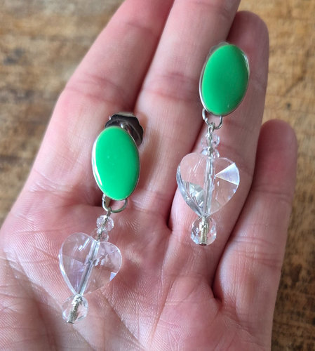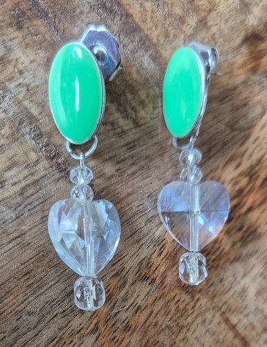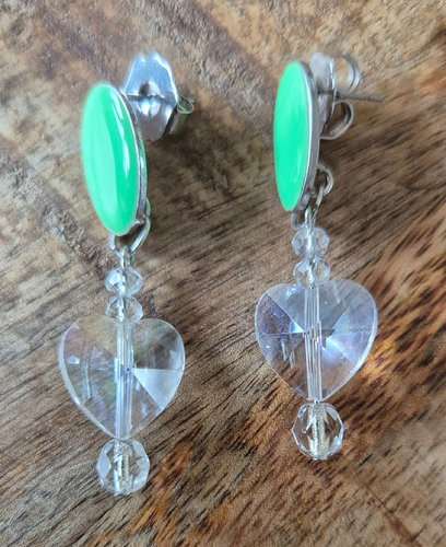 Deze prachtige lime groene oorbellen met een schitterend kristallen hart zijn de perfecte accessoire om je look op te fleuren. Met hun frisse en vrolijke uitstraling voegen ze een speels accent toe aan elke outfit. De oorbellen hebben een elegante lengte van 4,5 cm en zijn ideaal voor zowel alledaagse als feestelijke gelegenheden.
