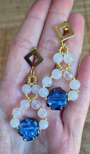 Deze prachtige goudkleurige oorstekers met een zelfgemaakte hanger van bergkristal kralen en een design bij Versace glaskraal zijn precies wat je zoekt. Met een lengte van 5,9 cm zijn deze oorbellen een statement piece dat je look compleet zal maken. De combinatie van materialen en het unieke ontwerp zorgen ervoor dat deze oorbellen opvallen en je outfit naar een hoger niveau tillen. Of je ze nu draagt voor een speciale gelegenheid of gewoon om je dagelijkse stijl op te fleuren, deze oorbellen zijn een must-have accessoire.