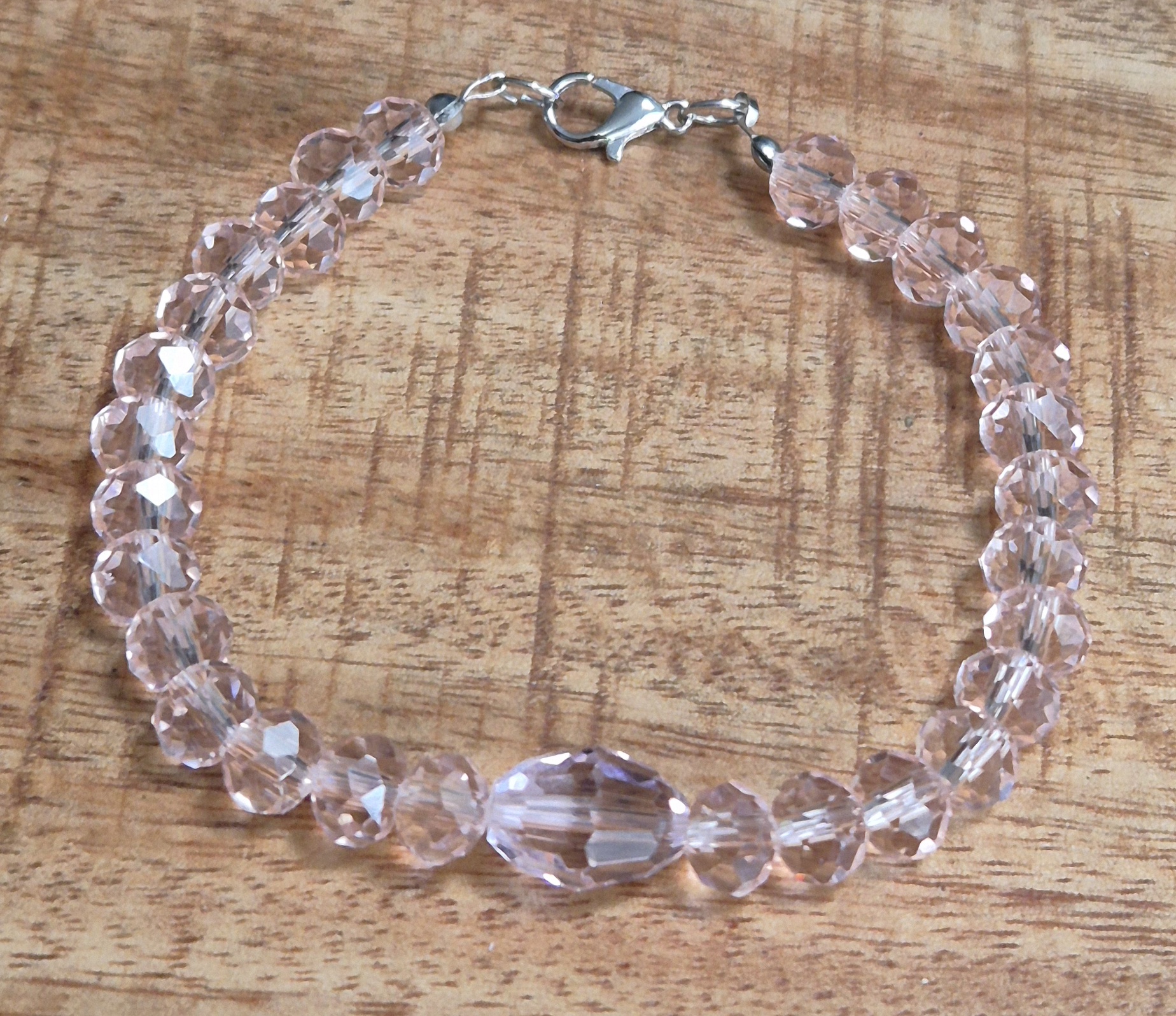 Deze armband van roze glasrondellen en een grotere roze glaskraal is een echte eyecatcher. De armband heeft een zilverkleurige sluiting en is geschikt voor een polsmaat van 19 cm. Met deze unieke armband om je pols, voeg je een vleugje kleur en stijl toe aan elke outfit. De glasrondellen roze armband is perfect voor dagelijks gebruik of voor een speciale gelegenheid.