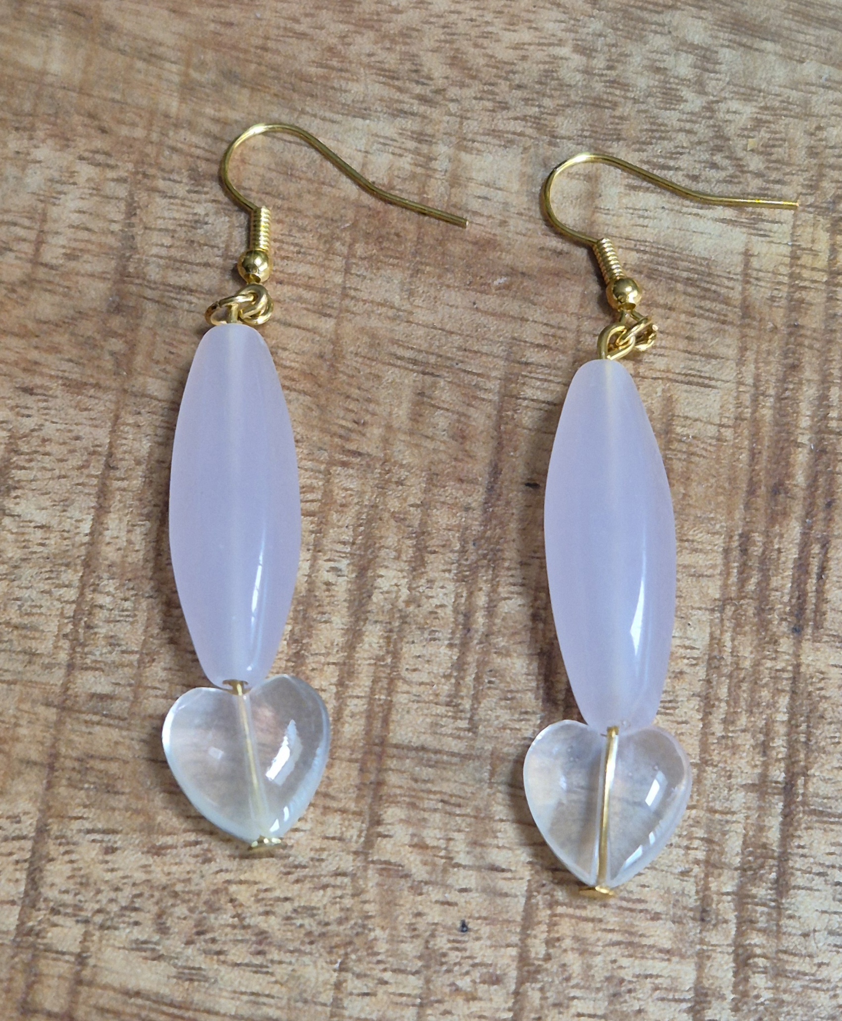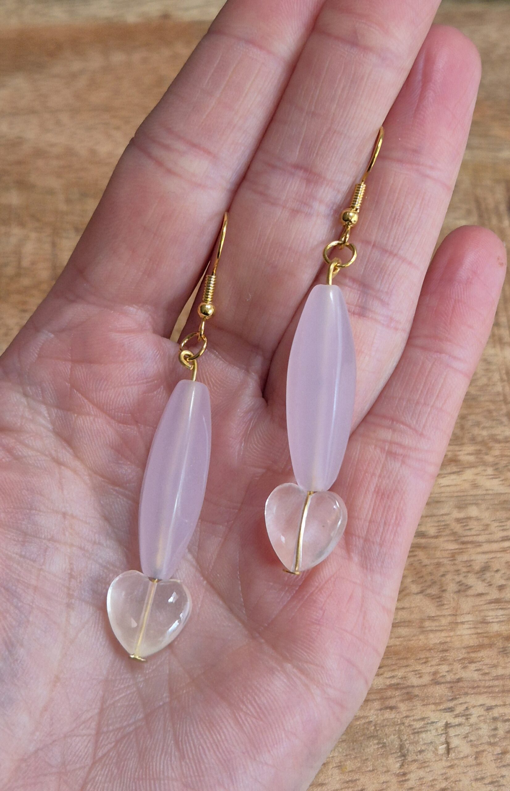 De oorbellen hebben een goudkleurige afwerking, met een schitterende rozenkwarts kraal en een roze polaris hartje eraan bevestigd. Met een lengte van 6 cm zijn deze oorbellen een opvallende toevoeging aan elke look.