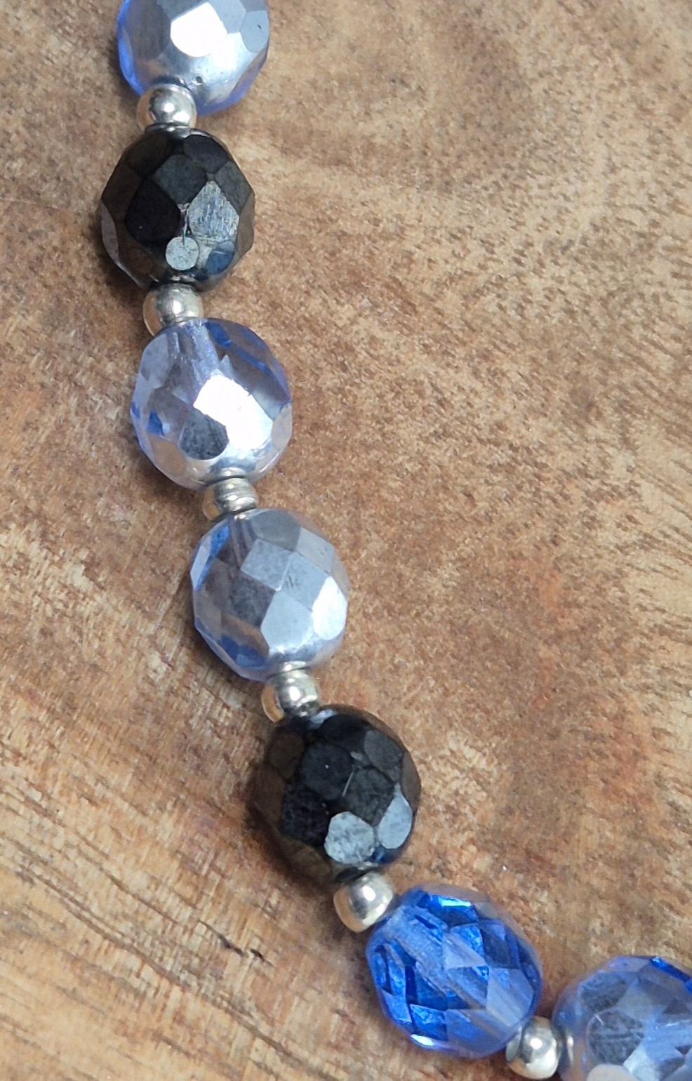 De armband is gemaakt van blauwe 8mm Tsjechische facetten en zilverkleurige kralen, die samen een prachtig en opvallend ontwerp creëren. De armband is geregen op stevig Nylon draad en heeft een handige zilverkleurige sluiting, waardoor hij gemakkelijk om en af te doen is. Met een lengte die geschikt is voor een polsmaat van 19cm, past deze armband perfect om jouw pols. Draag deze armband solo voor een subtiele touch of mix en match met andere armbanden voor een trendy en gepersonaliseerde look.