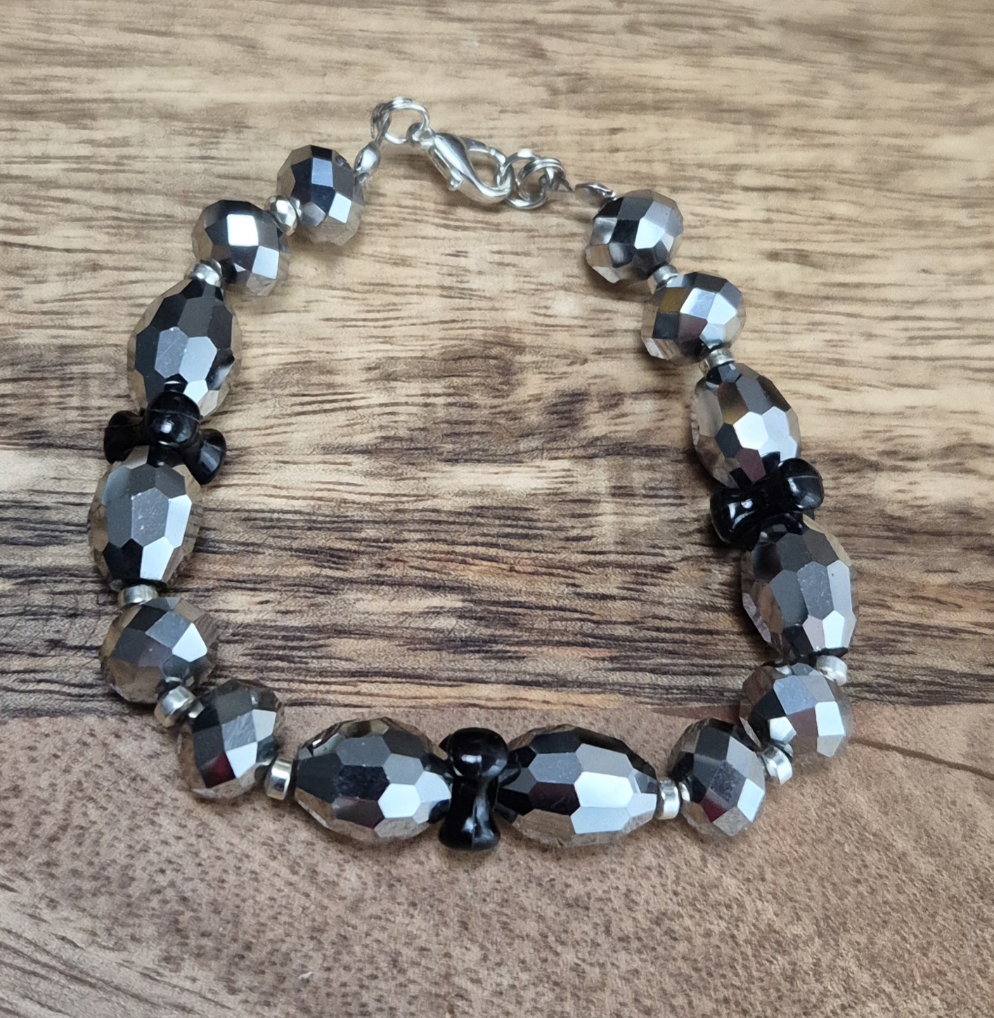 Met zijn zilverkleurige glaskralen en rondellen straalt deze armband elegantie en verfijning uit. De armband is geregen op nylondraad en heeft een handige zilverkleurige sluiting. De armband is geschikt voor een polsmaat van 19,5cm. Of je nu op zoek bent naar een mooie accessoire voor jezelf of een speciaal cadeau voor een geliefde, deze zilverkleurige armband is een tijdloze en veelzijdige keuze.