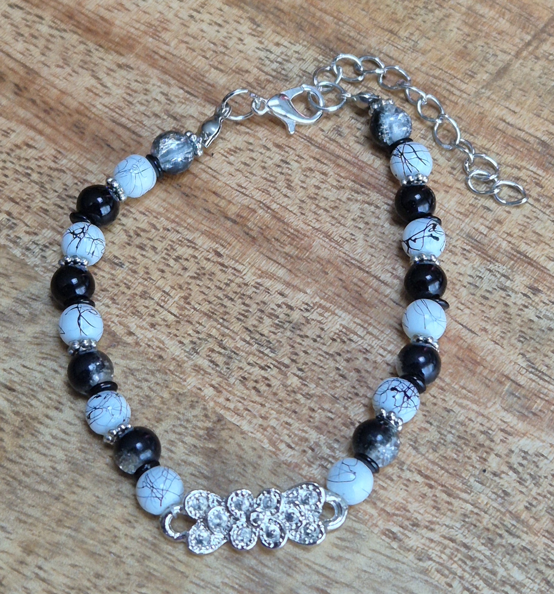 Zwartwit glaskralen armband